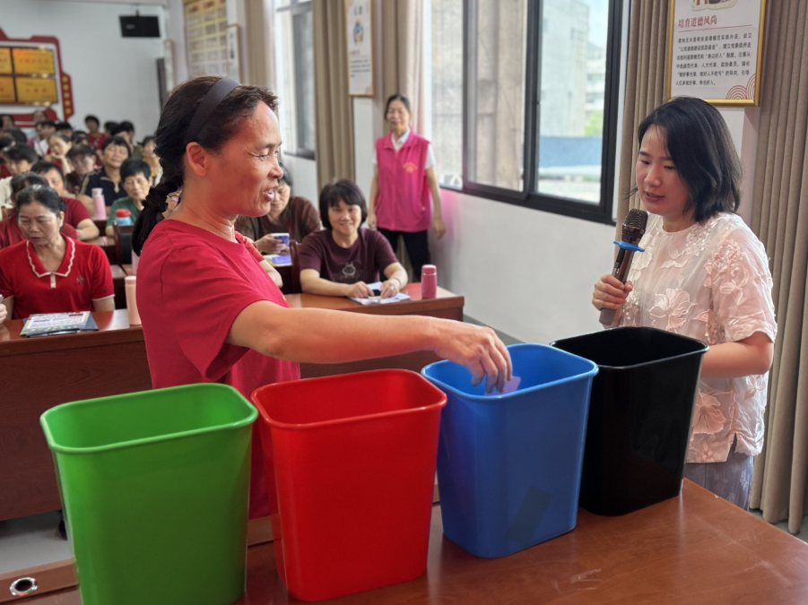 許連鳳號(hào)召婦女姐妹發(fā)揮獨(dú)特作用,帶領(lǐng)家庭爭(zhēng)當(dāng)垃圾分類(lèi)宣傳者、實(shí)踐者。鄭雨琳結(jié)合專(zhuān)業(yè)背景與志愿服務(wù)經(jīng)驗(yàn),生動(dòng)講解四類(lèi)垃圾精準(zhǔn)投放要點(diǎn)及環(huán)保意義。活動(dòng)還設(shè)置了趣味垃圾分類(lèi)小游戲,吸引眾多家庭參與,寓教于樂(lè)鞏固知識(shí)。