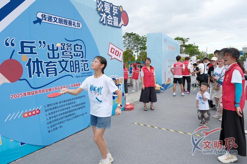 借助中國乒乓球俱樂部超級聯賽契機,文明觀賽專項行動在廈門奧體中心開展。活動將《廈門市文明觀賽公約》轉化為沉浸式體驗項目,印有公約的拍照框成熱門打卡點,啦啦操表演傳遞“文明觀賽”理念,“彈入文明觀賽杯”“為熱愛一起乒”等互動游戲,融入“垃圾隨手清理”“適時喝彩”等禮儀,吸引眾多市民參與,實現體育精神與文明素養(yǎng)同頻共振。