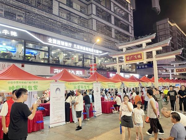 舞臺另一側,“文明集市”成為“街角遇見ta”的新亮點。“中醫(yī)夜市”專區(qū)人氣十足,中醫(yī)從業(yè)者現(xiàn)場為市民免費問診、科普養(yǎng)生知識,還通過中藥材展示、傳統(tǒng)理療體驗等形式,讓大家在感受中醫(yī)文化魅力的同時,傳遞“健康生活、文明養(yǎng)生”的理念。還有紅十字服務團的專業(yè)工作人員教授來往市民急救知識。