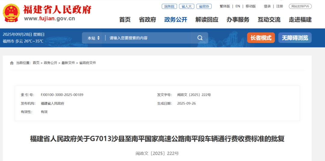 你們《關(guān)于呈請(qǐng)批準(zhǔn)G7013沙縣至南平國(guó)家高速公路南平段車輛通行費(fèi)收費(fèi)標(biāo)準(zhǔn)的請(qǐng)示》(閩交規(guī)〔2025〕42號(hào))收悉。經(jīng)研究,同意你們關(guān)于G7013沙縣至南平國(guó)家高速公路南平段車輛通行費(fèi)收費(fèi)標(biāo)準(zhǔn)的意見,即客車基本費(fèi)率按小型車(一類客車)0.60元/車公里計(jì)算,貨車及專項(xiàng)作業(yè)車基本費(fèi)率按小型車(一類貨車)0.45元/車公里計(jì)算。