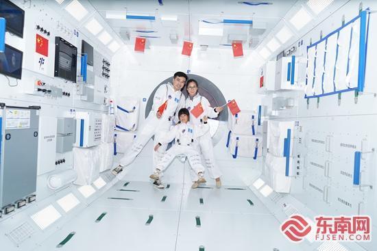 “國慶、中秋雙節(jié)即將到來,每個(gè)家庭可以換上航天服,免費(fèi)拍攝太空艙主題全家?!苯?,無穹-中國·航天科技館(泉州站)內(nèi),來自鯉城區(qū)的文明家庭、道德模范、新時(shí)代好少年及新就業(yè)群體等家庭代表收到一份充滿科幻色彩的雙節(jié)禮物。