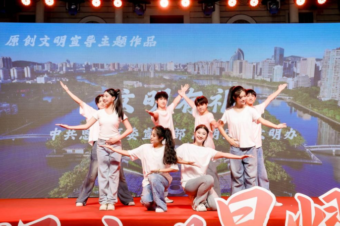 活動(dòng)當(dāng)晚,新市民登臺(tái)與黃厝本地居民同臺(tái)獻(xiàn)藝,共同演繹原創(chuàng)文明宣導(dǎo)主題作品《文明有禮》,以創(chuàng)意藝術(shù)形式呈現(xiàn)“文明有禮”的美好,共同涵養(yǎng)“思明習(xí)慣”。(新華社 李軒)