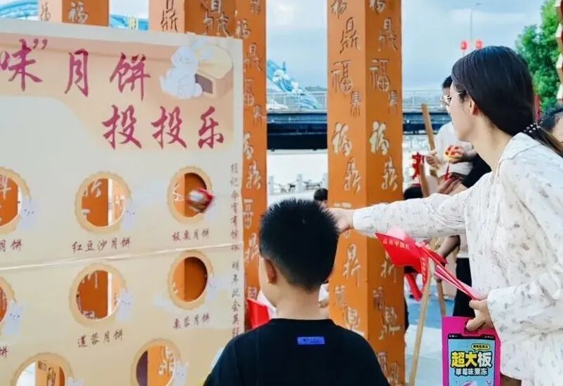 舞臺周邊設(shè)置的四大互動打卡區(qū),巧妙融入玉兔投壺、燈謎競猜、后羿射日、嫦娥奔月等傳統(tǒng)元素,市民或凝神猜燈謎,或笑語留影,在參與中感受文化、在體驗中傳承記憶。“以往中秋多是闔家團圓,如今能在這樣的場景中沉浸式過節(jié),讓人對文化有了更深的認(rèn)同。”市民王女士感慨道。