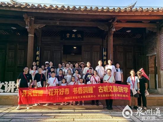 今年8月9日,開元街道新時(shí)代文明實(shí)踐所組織開展“花開好市 書香潤鯉”古城文脈研學(xué)活動。圖為參加者在小山叢竹的誠正堂外合影。