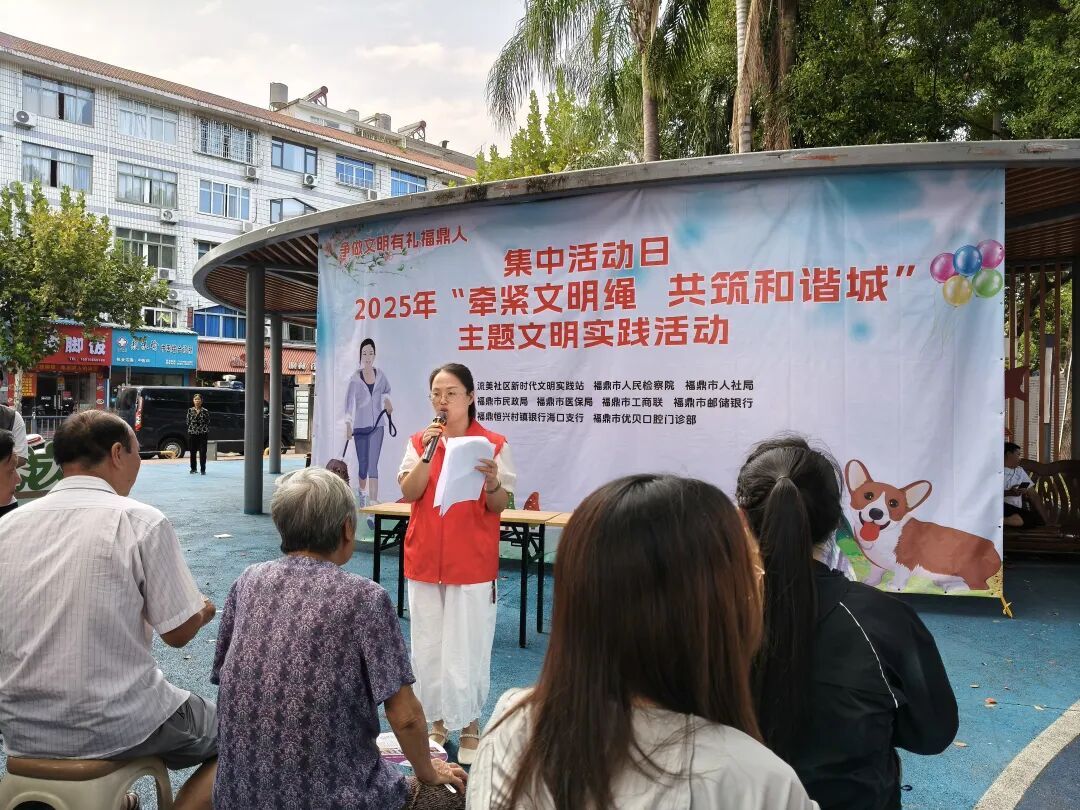 與此同時,福鼎市流美社區(qū)的“牽緊‘文明繩’ 共筑和諧城”文明實踐活動同樣溫情上演?!拔拿黟B(yǎng)犬承諾墻”前,居民們鄭重簽名,許下一份文明約定。志愿者現場示范如何挑選合適的牽引繩,民警則結合案例詳解《城市養(yǎng)犬管理條例》,強調“遛狗牽繩不僅是對規(guī)則的遵守,更是對老人、孩子的保護”。