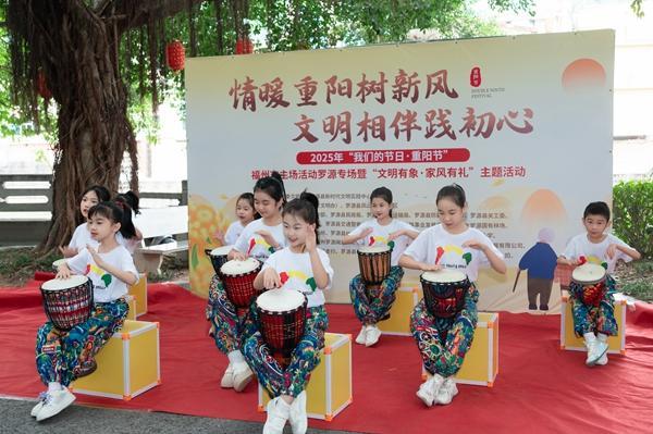 孩子們用歌聲與舞步為長者送上節(jié)日祝福,童心敬老,暖意融融。
