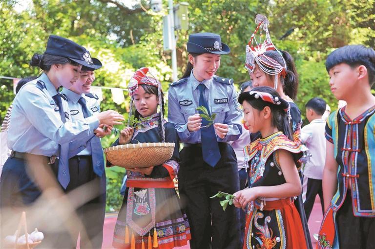 近日,福安市公安局坂中派出所、禁毒大隊(duì)、情報(bào)指揮中心聯(lián)合福安市坂中中心小學(xué),組成宣傳小隊(duì),將防溺水、防詐騙、禁毒等知識(shí)融入秋游旅程,讓畬鄉(xiāng)娃在沉浸式體驗(yàn)中收獲滿滿安全技能。警服藍(lán)與畬族服飾的鮮亮碰撞,勾勒出民族團(tuán)結(jié)的暖心畫(huà)面。