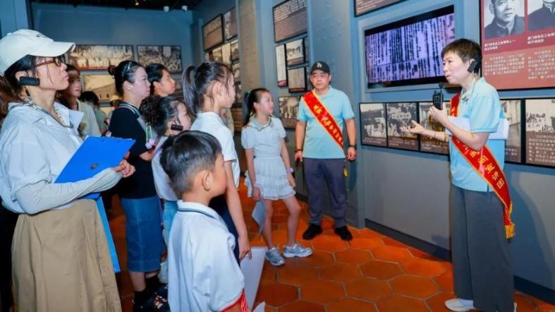 “思明?文明學(xué)習(xí)時間”志愿宣講員曹雪清(右一)向市民群眾講述思明紅色故事。新華網(wǎng)發(fā)(思明區(qū)委文明辦 供圖)