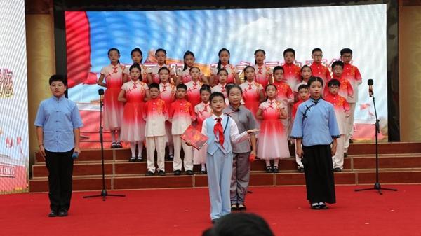 第三篇章“逐夢·吾輩擔(dān)當(dāng)”,泉州惠安廣海小學(xué)以《擎天立地中華魂》開篇,從大禹治水、愚公移山到長征火把、抗疫脊梁,細(xì)數(shù)五千年文明淬煉的中華精神,展現(xiàn)新時代好少年傳承錚錚鐵骨的堅定決心?;莅部h第四實驗小學(xué)帶來《冰雪長津湖》,重溫長津湖冰雕連在零下40度嚴(yán)寒中用生命詮釋“最可愛的人”的英雄事跡,提醒在場少年銘記盛世來之不易,勇?lián)鷷r代使命。惠安縣城南第二實驗小學(xué)以《新時代少年的中國夢》展現(xiàn)創(chuàng)新力量,將敦煌壁畫數(shù)字重生、月球土壤校園研究等場景融入誦讀,呈現(xiàn)新時代好少年用編程代碼續(xù)寫“甲骨文”、以星辰大海為坐標(biāo)系的遠(yuǎn)大志向?;莅部h螺城中心小學(xué)以《我有一束光》致敬革命先驅(qū)蕭楚女,再現(xiàn)其以筆為刃、如紅燭般燃燒自己照亮黑暗的壯麗一生,用跨越時空的精神力量為展演畫上圓滿句點。