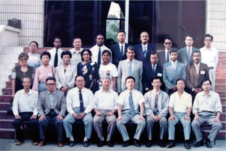 1995年,東高地省學(xué)員瓦伊(后排左四)來福建參加菌草技術(shù)培訓(xùn)。(受訪者供圖)