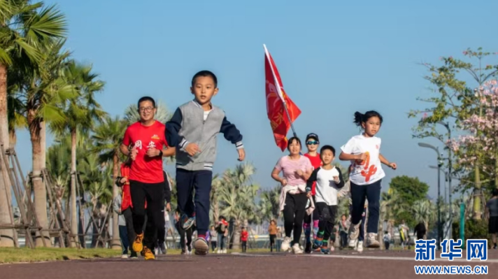 濱海浪漫線彩虹跑道上,中洲社區(qū)居民參加親子跑活動(dòng)(資料圖)。新華網(wǎng)發(fā)(受訪者 供圖)
