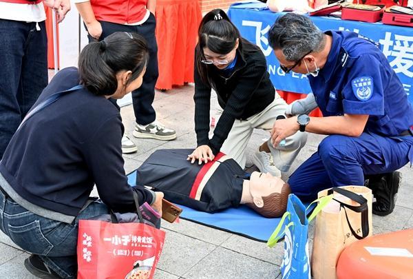 市民現(xiàn)場體驗急救技能。(吳覓亮 攝)