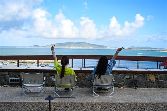 在君山片區(qū)漁嶼村,游客坐在椅子上眺望大海。江信恒 攝
