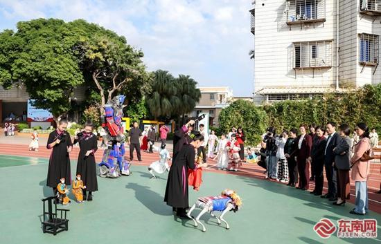 管弦樂演奏《佛羅倫薩進行曲》、閩南童謠《四海五洲好朋友,都愛來?咱泉州》、情景童謠表演《府文廟 拜孔子》……隨后的學(xué)校少年宮特色項目展演活動,7所學(xué)校學(xué)生在舞臺上展示平日所學(xué)。