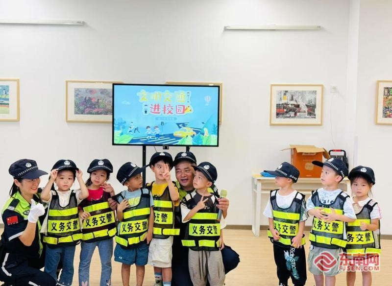 向“小小交警”教授交通指揮手勢(集美區(qū)義務(wù)交警隊(duì)供圖)