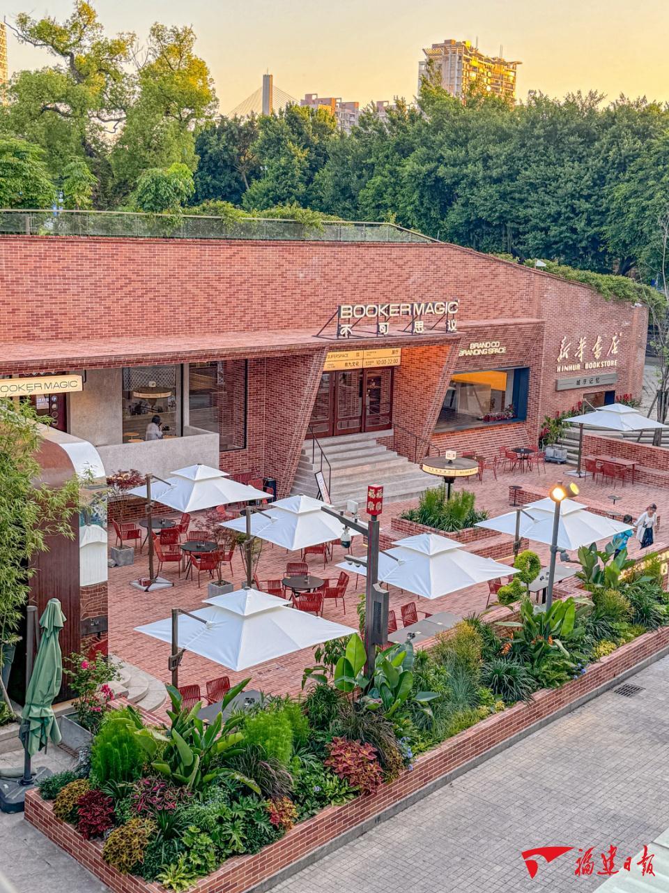 新華書店·城市記憶主題書店依偎在解放大橋橋頭青年廣場(chǎng)江畔,與民國(guó)風(fēng)情紅磚建筑群相映成趣,復(fù)刻著老福州的“城市記憶”。