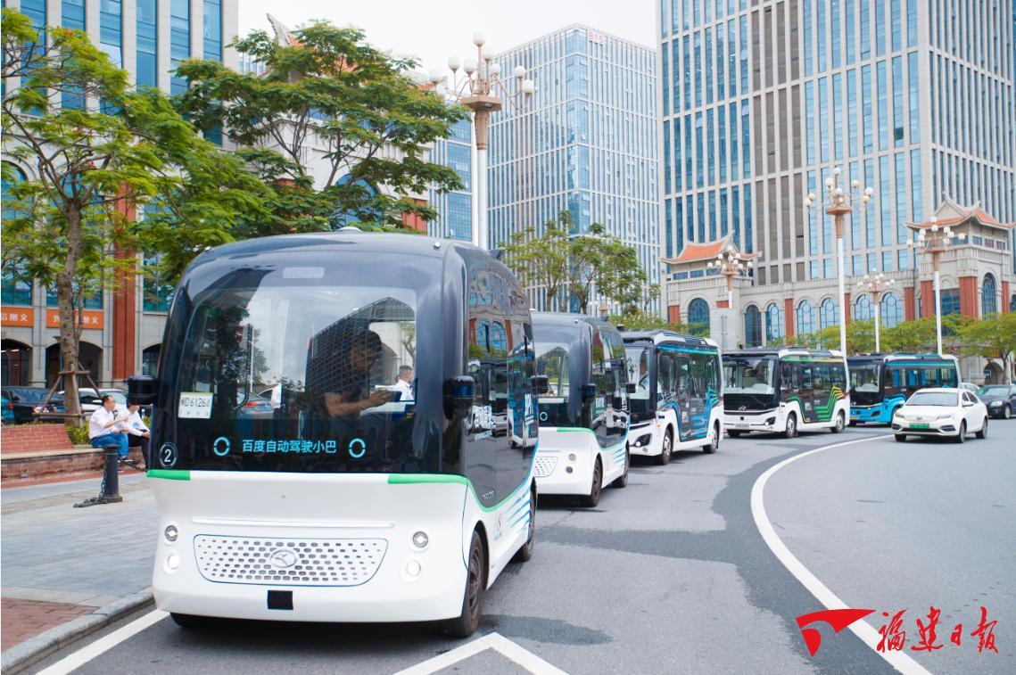 多款自動駕駛金龍巴士在廈門軟件園三期行駛。 福建日報記者 施辰靜 攝