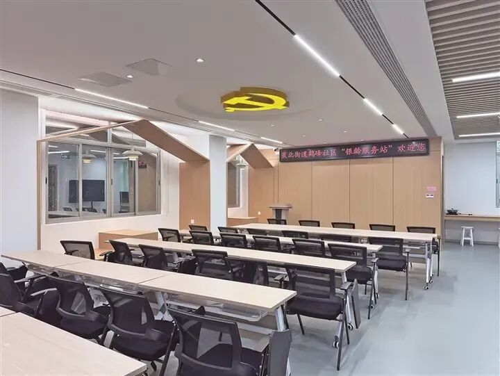 鶴峰社區(qū)居家養(yǎng)老服務(wù)站(銀齡服務(wù)站)開放交流區(qū)。
