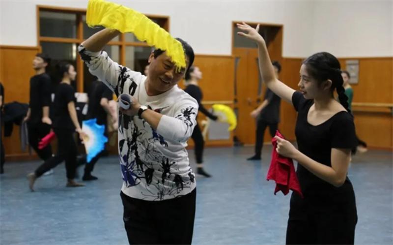 金明指導(dǎo)學(xué)生排舞。