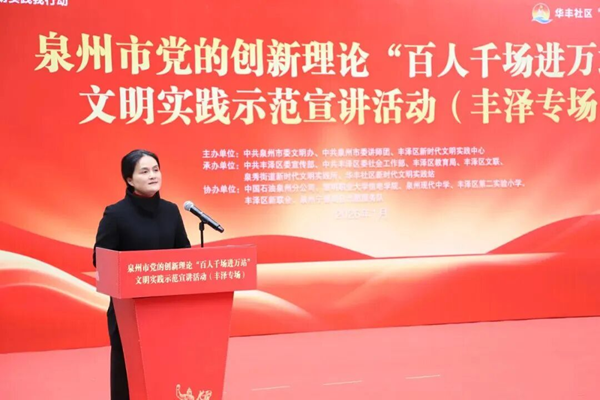 本場活動由中共泉州市委文明辦、中共泉州市委講師團、豐澤區(qū)新時代文明實踐中心主辦,中共豐澤區(qū)委宣傳部、中共豐澤區(qū)委社會工作部、豐澤區(qū)教育局、豐澤區(qū)文聯(lián)、泉秀街道新時代文明實踐所、華豐社區(qū)新時代文明實踐站承辦。