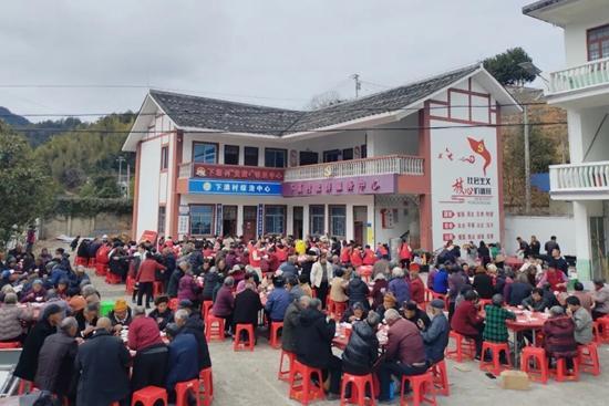 活動(dòng)現(xiàn)場(chǎng),“愛心廚房”人氣最旺。志愿者林傳盧得知活動(dòng)將為全村70歲以上老人送上臘八關(guān)懷后,主動(dòng)捐贈(zèng)自家飼養(yǎng)的一頭生豬,為老人們打造熱氣騰騰的“全豬宴”,讓煙火氣中多了份鄰里守望的暖意。中午,200多位70歲以上老人陸續(xù)入座,志愿者們端上噴香的臘八粥和可口的全豬宴菜肴?!斑@肉燉得真爛乎,這輩子沒吃過這么熱鬧的臘八飯!”81歲的林奶奶笑容滿面。老人們圍坐暢談、共話新春,歡聲笑語與菜肴香氣交織,構(gòu)成一幅溫馨和睦的鄉(xiāng)村圖景。