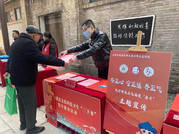 文明風(fēng)1月30日訊 為迎接新春佳節(jié),1月30日,松溪縣委文明辦在鄭墩鎮(zhèn)“1955·糧倉(cāng)里”開展“存正心、守正道、養(yǎng)正氣”(以下簡(jiǎn)稱“三正”)宣傳活動(dòng)?;顒?dòng)以“三正”名片為主題,結(jié)合文化科技衛(wèi)生“三下鄉(xiāng)”集中服務(wù)、“文明實(shí)踐之我為群眾送新風(fēng)”活動(dòng),推動(dòng)“三正”理念融入鄉(xiāng)村治理、浸潤(rùn)群眾生活,鞏固提升新風(fēng)正氣福建“名片”,擦亮新時(shí)代文明底色。