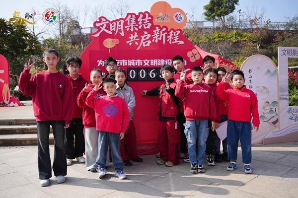 林添盛、林少青、黃梓奇、黃清地等領(lǐng)導(dǎo)登臺(tái),共同啟動(dòng),為2026年南安市城市文明建設(shè)主題系列活動(dòng)拉開序幕。全國文明單位南安市稅務(wù)局代表宣讀《“共創(chuàng)文明南安同筑海絲名城”城市文明建設(shè)倡議書》,號(hào)召大家攜手共建美好家園;福建省五星級(jí)志愿者楊海燕宣讀《“同譜文明新篇 共筑文明南安”文明實(shí)踐志愿服務(wù)倡議書》,讓志愿精神更具感染力。