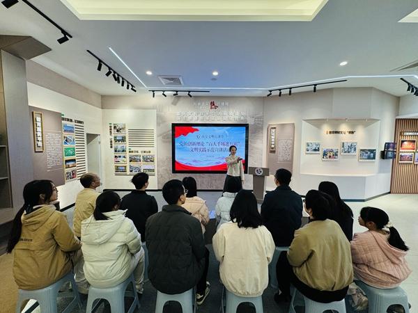 在南安市新時(shí)代文明實(shí)踐中心開展的黨的創(chuàng)新理論“百人千場進(jìn)萬站”文明實(shí)踐示范宣講活動(dòng)現(xiàn)場,南安市“理響武榮”宣講團(tuán)成員、市世界文化遺產(chǎn)保護(hù)中心主任何春燕以《石刻照初心 絲路續(xù)新章》為題,為現(xiàn)場黨員干部宣講黨的二十屆四中全會(huì)精神。
