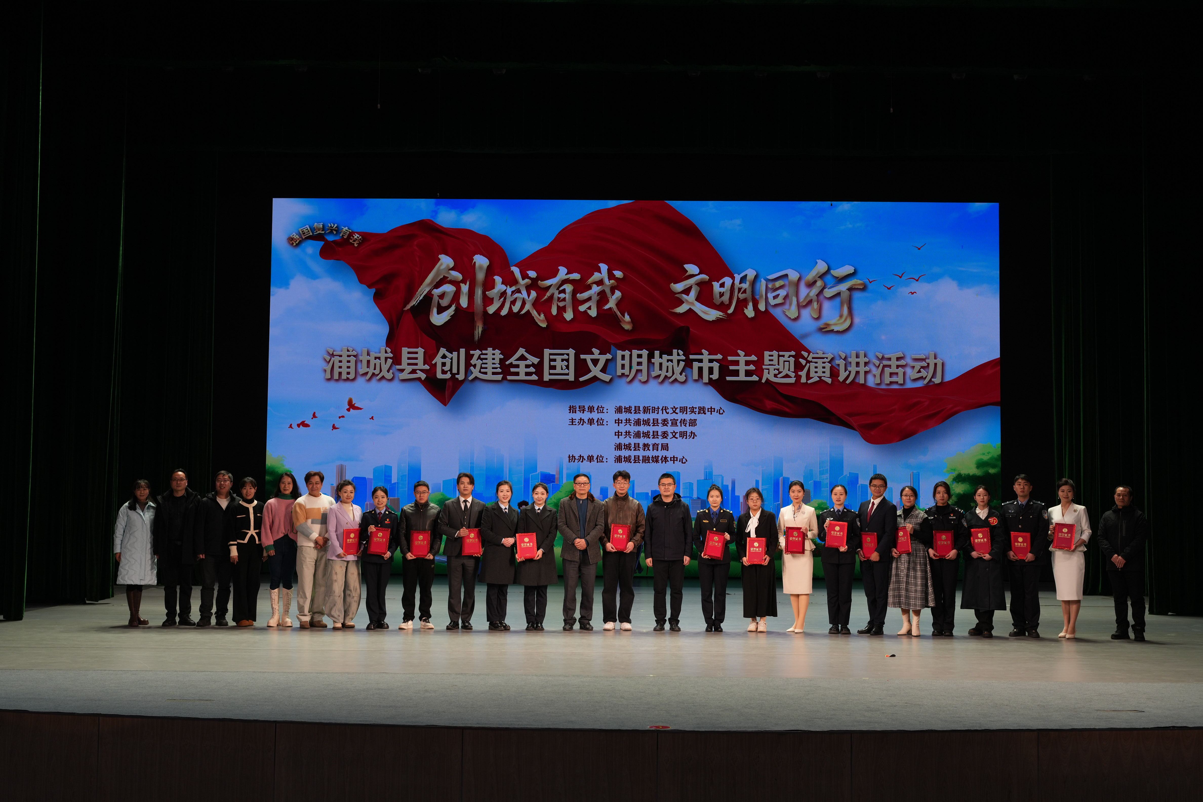 創(chuàng)城有我,文明同行。1月31日,浦城縣創(chuàng)建全國(guó)文明城市主題演講活動(dòng)在浦城大劇院順利舉行。