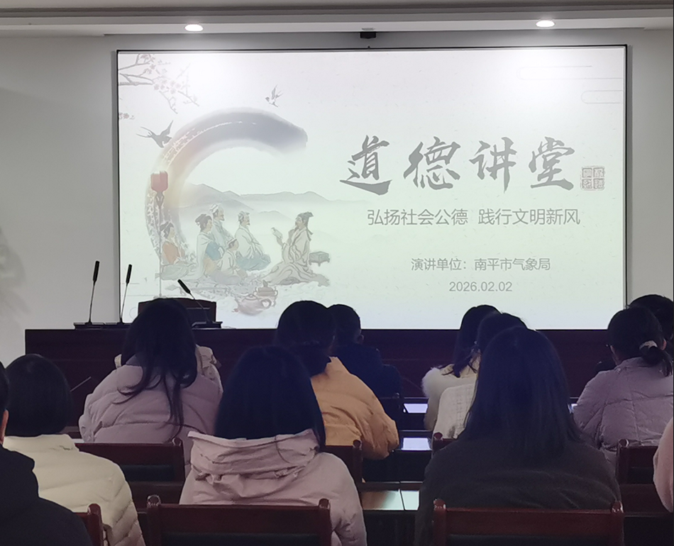 文明風(fēng)2月6日訊 為強(qiáng)化干部職工的社會責(zé)任意識和公共意識,增強(qiáng)踐行文明新風(fēng)的使命感,積極投身南平創(chuàng)建文明城市工作,2月2日,南平市氣象局舉辦“弘揚(yáng)社會公德 踐行文明新風(fēng)”主題道德講堂,干部職工齊聚一堂,接受道德滋養(yǎng),凝聚創(chuàng)城共識。