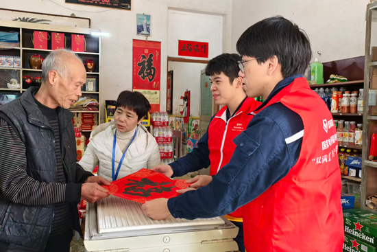 服務(wù)隊(duì)為居民送上春聯(lián)