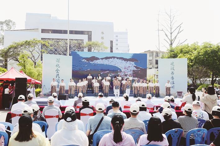 參賽選手用多元化形式演繹閱讀所得。 “我用殘損的手掌,摸索這廣大的土地……”古田縣圖書館舉辦2025年“4?23”世界讀書日暨公共圖書館服務(wù)宣傳周全民閱讀系列活動(dòng)。啟動(dòng)活動(dòng)上,中華經(jīng)典《白馬篇》與愛國(guó)詩(shī)歌《我用殘損的手掌》的演繹,展現(xiàn)了經(jīng)典文學(xué)的魅力與深厚的愛國(guó)情懷,瞬間點(diǎn)燃現(xiàn)場(chǎng)氛圍。 家長(zhǎng)與孩子依偎共讀,書頁(yè)輕翻,暖融融的親子時(shí)光在字里行間流淌?;顒?dòng)還針對(duì)親子家庭,開設(shè)了“親子朗誦”環(huán)節(jié),為家長(zhǎng)和孩子搭建共同學(xué)習(xí)、交流的平臺(tái),讓閱讀成為親子間情感溝通的橋梁。 未來(lái),寧德市將繼續(xù)探索多元化閱讀推廣路徑,助力學(xué)生在書香中收獲智慧,在思辨中茁壯成長(zhǎng)。 豐富內(nèi)涵 提升閱讀品質(zhì) 讀書分享會(huì)、專題講座只是寧德市以文明實(shí)踐活動(dòng)營(yíng)造文化氛圍的冰山一角。目前,寧德以世界讀書日為契機(jī),通過(guò)經(jīng)典誦讀、文藝展演、游園會(huì)等形式,用優(yōu)秀傳統(tǒng)文化培根鑄魂,為市民提供豐潤(rùn)的文化滋養(yǎng)。 在“書香福鼎 春暉閱動(dòng)”全民閱讀日誦讀會(huì)上,《山海書聲》《但愿人長(zhǎng)久》《岳陽(yáng)樓記》《畬鄉(xiāng)茶韻誦一東》《春江花月夜》《書香福鼎 春動(dòng)人心》等節(jié)目融合多元藝術(shù)形式,盡顯經(jīng)典魅力。 福鼎市實(shí)驗(yàn)小學(xué)柏洋校區(qū)學(xué)生表演《畬鄉(xiāng)茶韻誦一東》。 這是福鼎市全民閱讀系列活動(dòng)之一,旨在通過(guò)多元化聯(lián)動(dòng)模式,引領(lǐng)市民在春日盡情享受閱讀帶來(lái)的樂(lè)趣。當(dāng)濃濃的書香飄過(guò),一個(gè)個(gè)求索的身影正在以不同方式共赴書香之約,他們與書為友,“悅”享生活。 走進(jìn)“自然有約”草坪讀書會(huì),書香與藝術(shù)交融,自然同人文輝映。在主舞臺(tái)區(qū),《白茶賦》《送東陽(yáng)馬生序》等經(jīng)典誦讀與《明月幾時(shí)有》《觀滄?!返挠茡P(yáng)旋律交替上演;東側(cè)草坪上,20組親子家庭通過(guò)“知識(shí)闖關(guān)”“春日手作”等互動(dòng)環(huán)節(jié),開啟了趣味盎然的書香游園之旅;北面展區(qū)內(nèi),50位師生家長(zhǎng)以“山茶書畫”為主題,用筆墨書寫茶韻詩(shī)情;中廳的“詩(shī)詞茶話會(huì)”上,太姥詩(shī)社成員吟誦原創(chuàng)作品,娓娓訴說(shuō)福鼎的滄桑巨變;南側(cè)展出的30幅“品茗賞字”茶事墨寶,更是吸引了不少市民駐足觀賞。