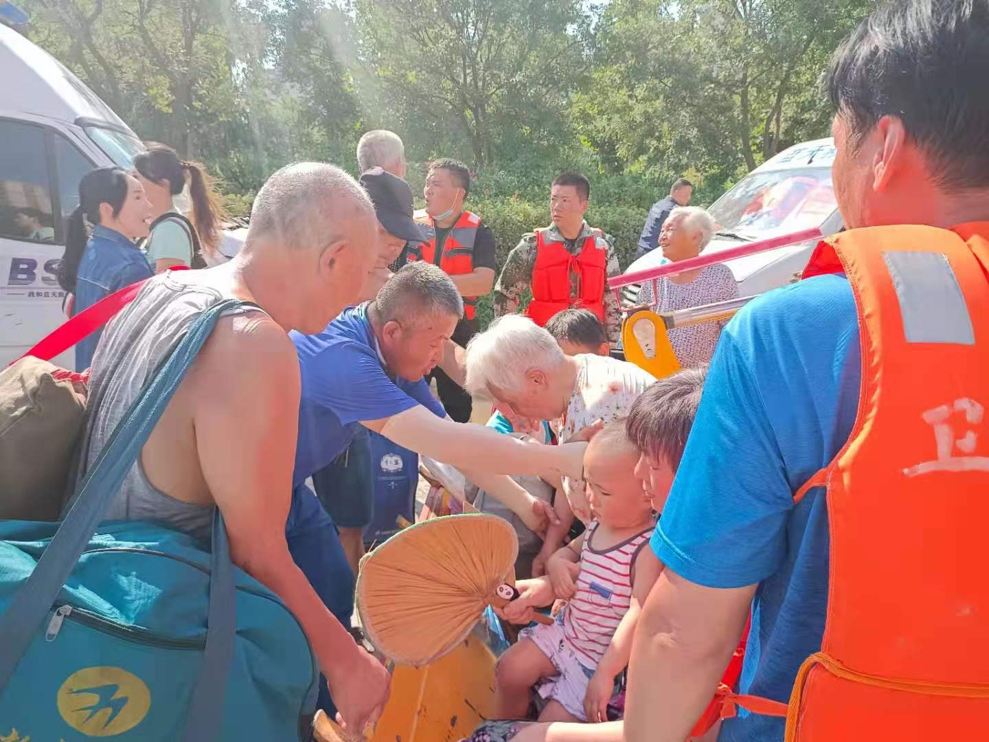 ?藍(lán)天救援隊(duì)員轉(zhuǎn)移受災(zāi)群眾現(xiàn)場(chǎng)