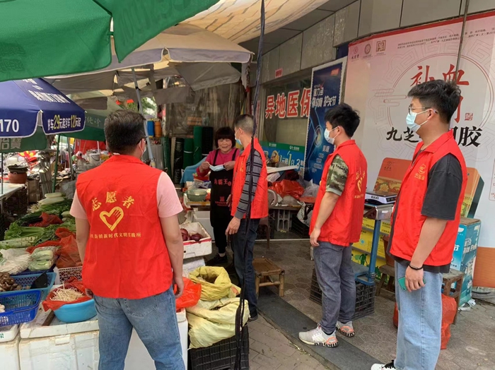 2022年3月,五里街鎮(zhèn)農(nóng)貿(mào)市場(chǎng):開展疫情防控工作,勸導(dǎo)群眾佩戴口罩。華巖社區(qū) 供圖
