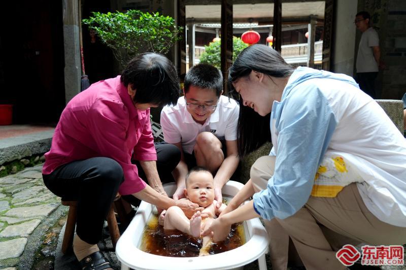 土樓人家給孩子洗午時(shí)水。 永定區(qū)融媒體供圖