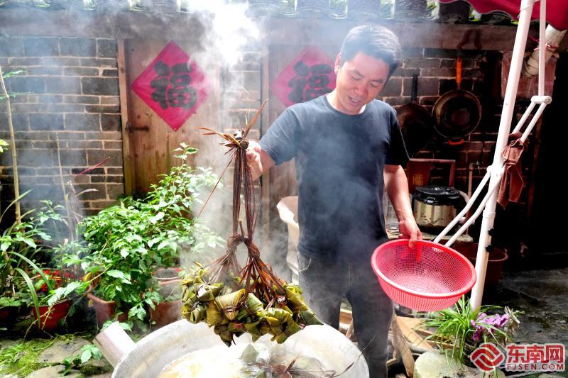 在土樓里,包粽子的傳統(tǒng)更添溫情,三代人圍坐在土樓廳堂,長輩耐心地教晚輩折粽葉、纏棉線。村民們告訴記者,用山泉水浸泡糯米,采摘后山新鮮的粽葉,這樣包出的粽子才有濃濃的“家鄉(xiāng)味”。蒸籠掀開,白霧升騰,粽香與歡笑聲彌漫整個(gè)院落。