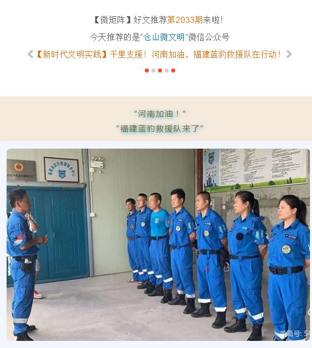 近日,河南省災(zāi)情牽動人心,河南成為億萬中國人心之所系。政和縣藍(lán)天救援隊接到馳援任務(wù),第一時間集結(jié),火速前往災(zāi)區(qū)救援!