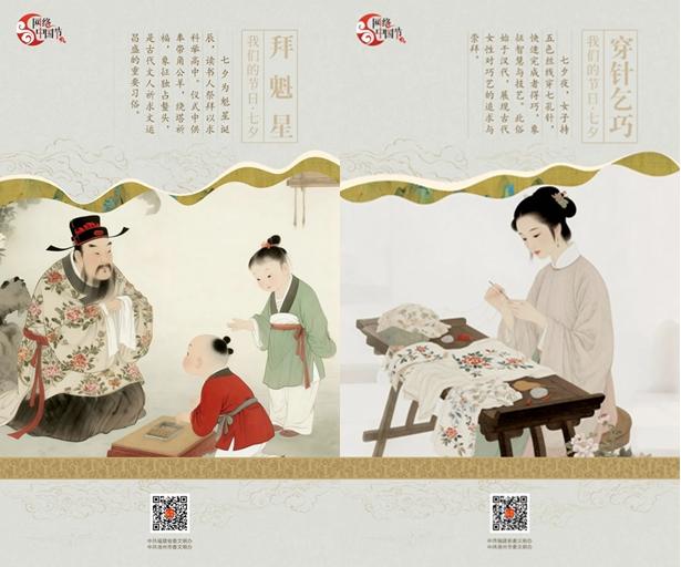 七夕,原名為乞巧節(jié)。七夕乞巧,這個節(jié)日起源于漢代,東晉葛洪的《西京雜記》有“漢彩女常以七月七日穿七孔針于開襟樓,人俱習(xí)之”的記載,這便是我們于古代文獻(xiàn)中所見到的最早的關(guān)于乞巧的記載。